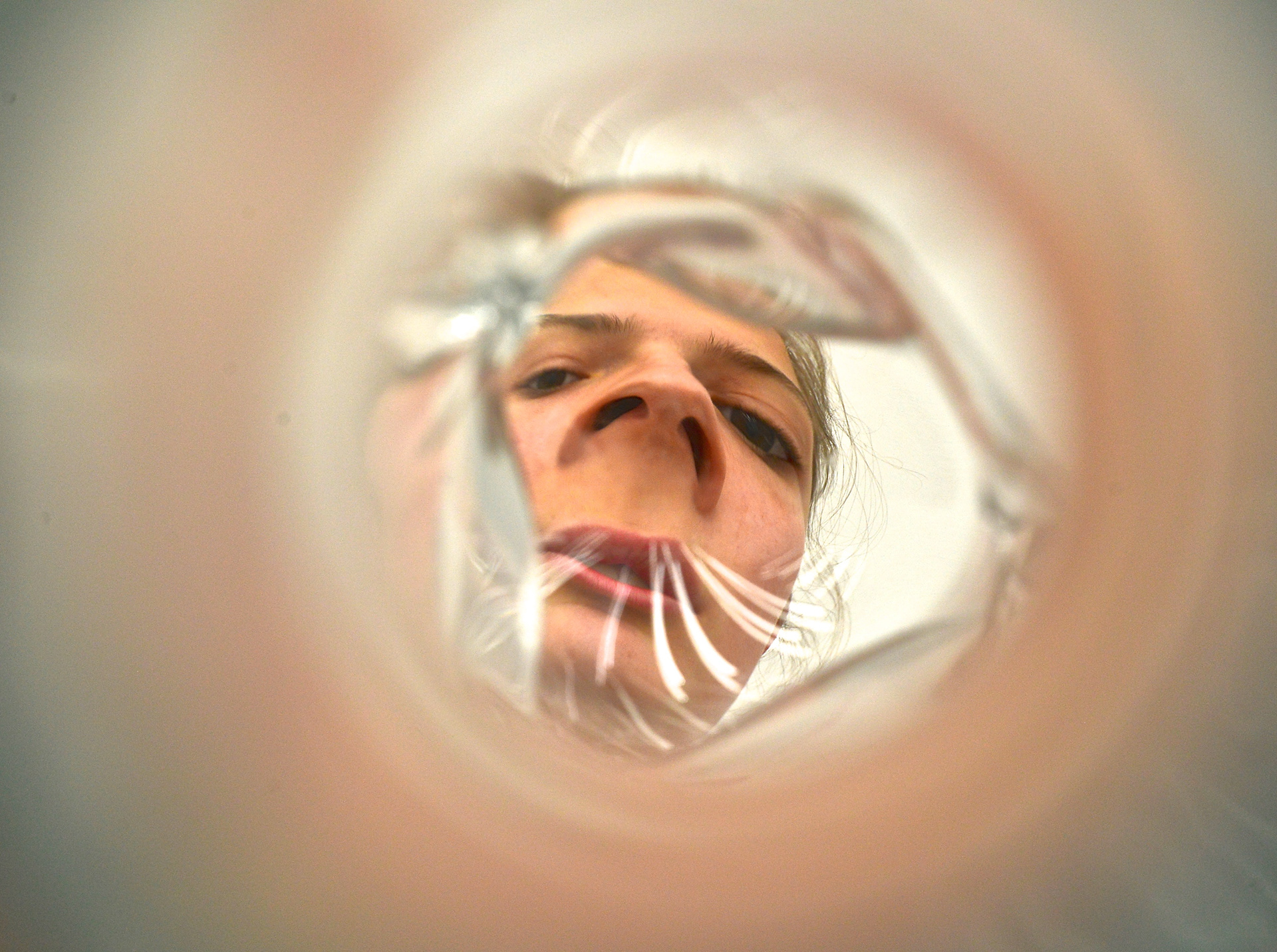 The theme of distortion emerged from an exploration of identity and perception. Inspired by André Kertész’s Distortionsseries (1933), the project reimagines his warped mirrors through a custom tool: an amorphous, hand-blown glass lens replacing the traditional camera lens. This lens was used to capture portraits of friends and family, with the bulbous glass announcing its transformative impact on both the subject and the resulting image.