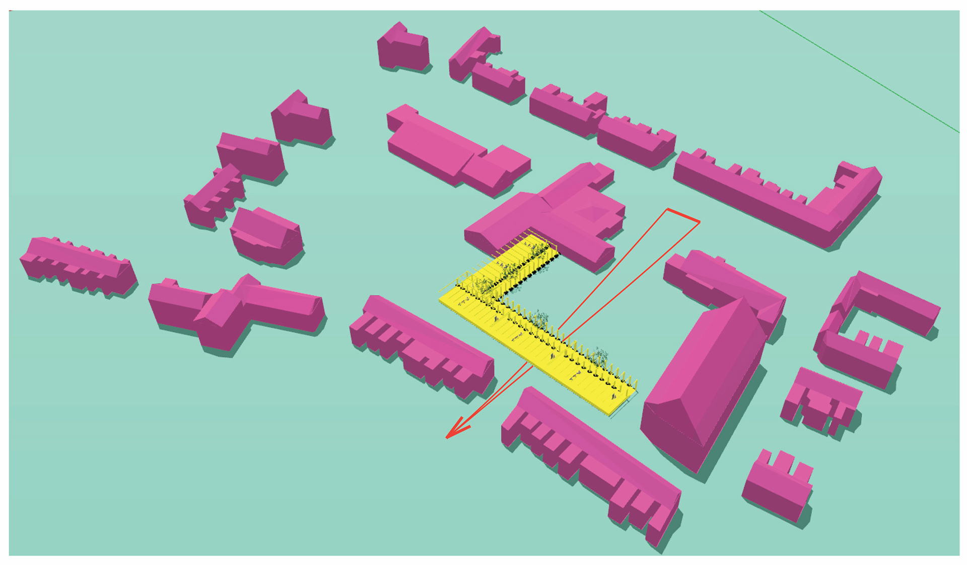 Section drawing through the school, facing West